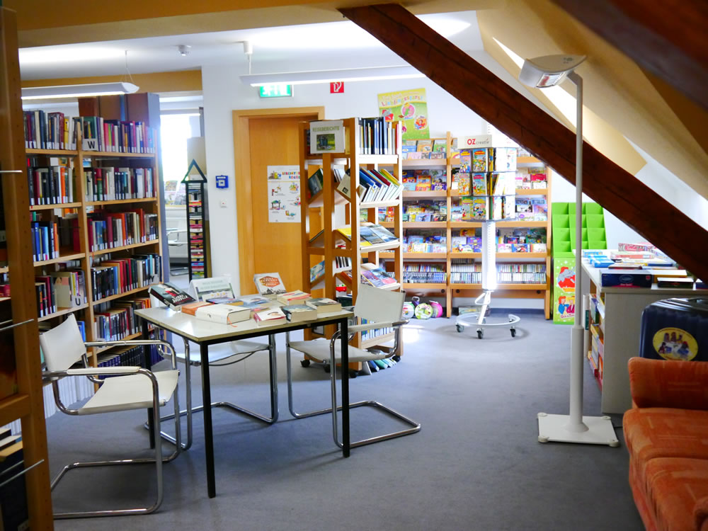 Die Bibliothek bietet Ihnen neben aktueller Literatur auch ein breites Angebot an DVDs, Hörbüchern, Zeitschriften und Spielen. Rund 13.000 Medien vermitteln Wissen und Fakten zu vielen Lebens- und Sachgebieten, für Ihre Freizeitgestaltung, die Berufswelt oder zur allgemeinen Information. Auch Kinder und Jugendliche finden ein speziell auf sie zugeschnittenes Medienangebot in jeweils eigenen Bereichen.