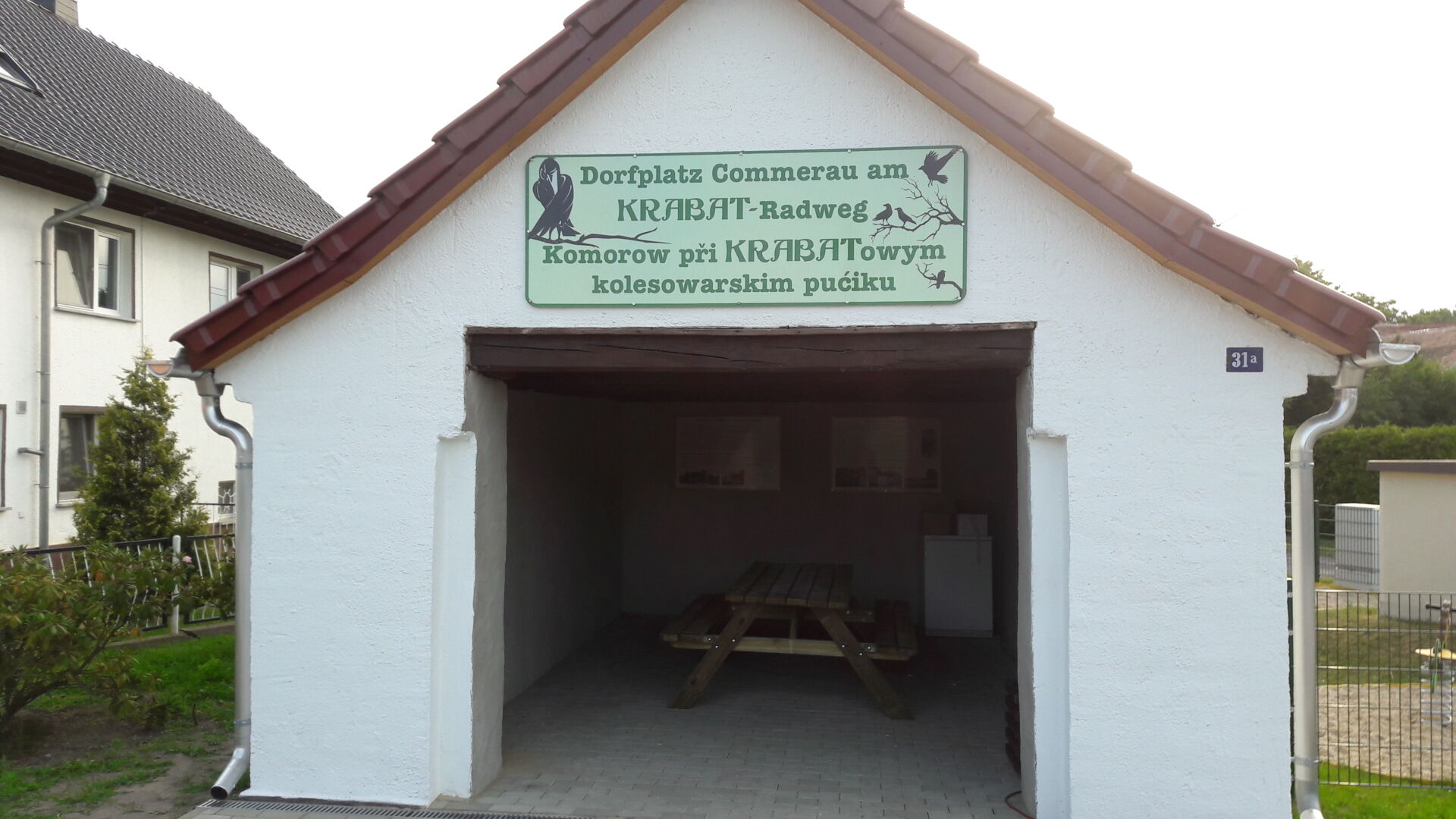 Im Dorfzentrum von Commerau wurde das ehemalige Feuerwehrgerätehaus zur Begegnungsstätte für alle Generationen umgebaut. Durch bauliche Veränderungen wurde eine offene überdachte Begegnungsstätte und Rastplatz mit Sitzmöglichkeit daraus.